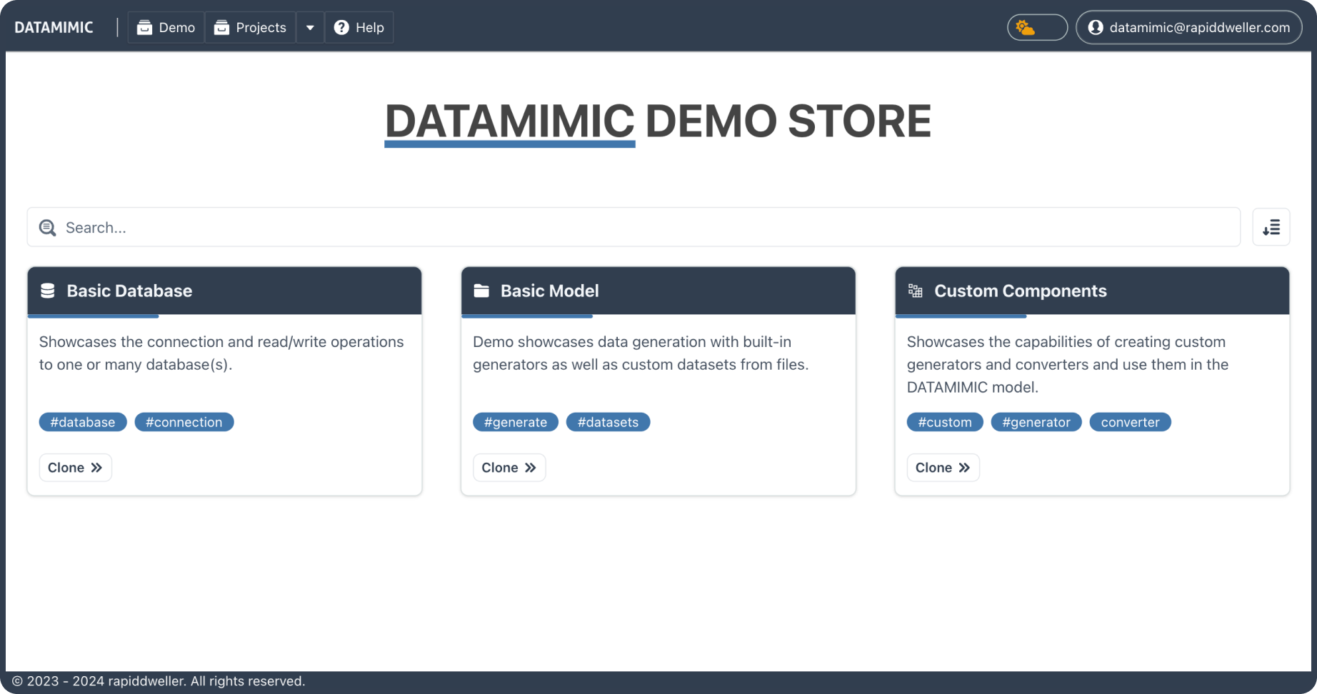 DATAMIMIC offers several options for creating projects. Create projects from scratch or build upon a range of templates for education, finance, logistics and further use-cases.