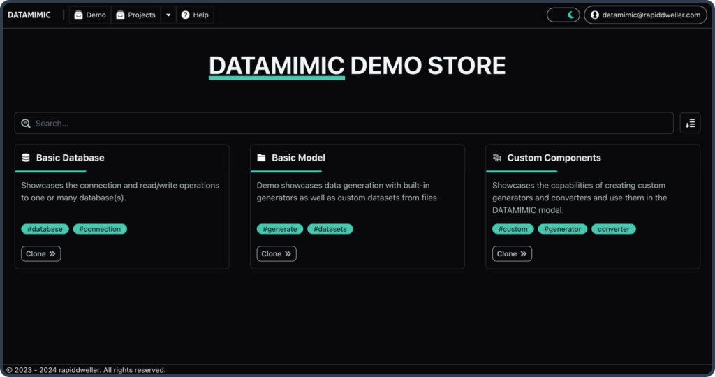 We understand that embarking on your journey with DATAMIMIC might present a learning curve. That’s precisely why DATAMIMIC UI has been designed—to simplify your introduction and support your journey from basic to advanced scenarios. With an array of pre-configured examples and project templates, coupled with our distilled best practices from extensive real-world applications, DATAMIMIC UI is your accelerator. It enables you to quickly harness the full potential of DATAMIMIC for your test data needs.